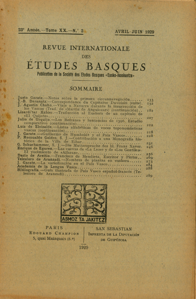 - Eusko Ikaskuntza; Paris - San Sebastian; 1929