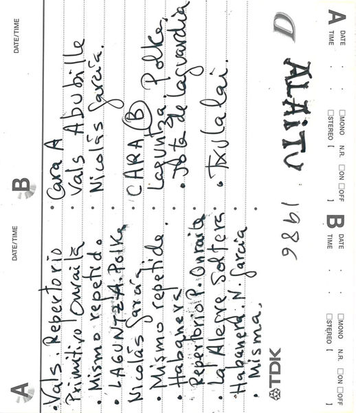 CARA A 1- Lekeitioko andreen aurreskua. 2- Iribaseko ingurutxoa. 3- Axuri beltza. CARA B IRUÑAKO TTUNTTUNA 1- Sokadantza. 2- Zortzikoa. 3- Pañuelo dantza. 4- Inguru dantza. 5- Fandango. 6- Kontradantza. 7- Karrika dantza. XUBEROKO MASKARADA 8- Barrikada hausia eta arribada. 9- Aintzina Phika. 10- Gabota zaharra. 11- Satan. 12- Godalet dantza.
