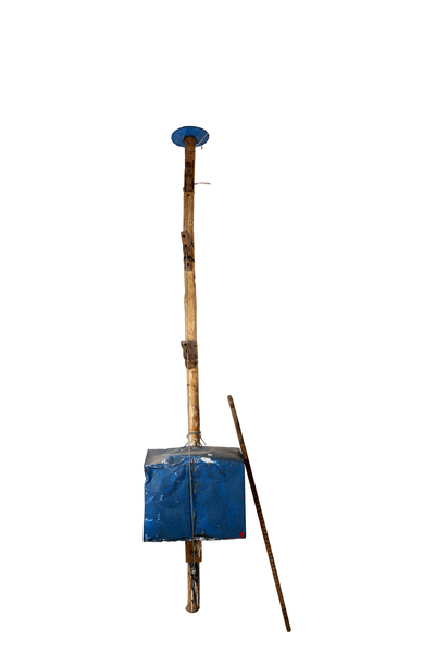 Makila luze baten bi muturretan metalezko haria tenkatzen da, eta beheko aldean, hariaren eta makilaren artean, latontzi bat jartzen da. Latontzi honek zulo bat dauka aurreko aldean, erresonantzia kaxa gisa. Makilaren goiko muturrean, berriz, latorrizko zati batzuk jartzen dira, panderoaren txinden antzera. Jotzeko bertikalki hartzen da, esku batekin, eta lurraren kontra jotzen da, erritmoa markatuz eta goiko txindak joaraziz. Beste eskuarekin zurezko karraskagailu luze bat harturik, metalezko haria igurtziz jotzen da, biolin baten modura.