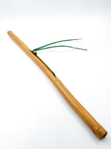 Kanabera arrunt bat da. Mutur batetik kirteneraino irekita dago, erdi-erditik. Astintzerakoan mugitzen den kanabera erdia kirtenaldean errebajaturik dago eta erdialdean bi zintzarri ditu, zinta txuri-berdekin apaindurik.