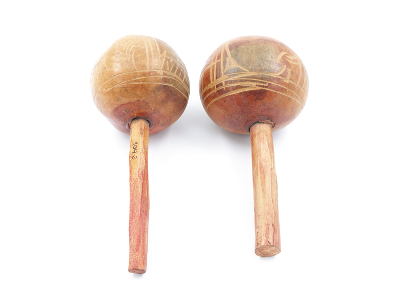 Kokoen azal gogorrarekin eta zurezko kirtenarekin egindako bi maraka. Astintzerakoan, barruan dituzten hazi aleek hotsa ematen dute. Gorri eta berdez margotua dago. Labarekin marrazkiak eta honako idatzia grabatuta dauka: Masaya.